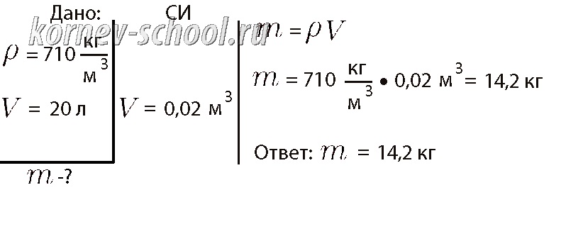 5. Найти массу бензина в 20 литровой канистре(Плотность бензина 710 кг/м3)